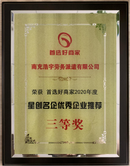 我公司荣获首选好商家2020年度星创名企优秀企业推荐