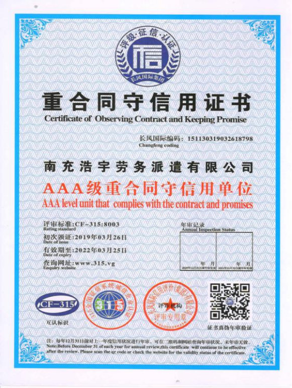 上一篇: 我公司荣获质量服务信誉证书AAA认证 下一篇:我公司获得质量管理体系认证证书